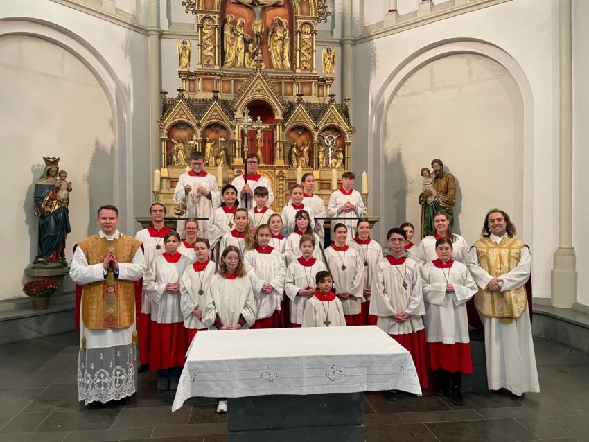 Am vergangenen Sonntag zum Hochfest Christkönig waren alle Messdiener eingeladen, gemeinsam im Dom zu dienen. Viele Messdiener waren für diesen besonderen Gottesdienst zusammen gekommen. Im Anschluss fand ein Empfang im Pfarrheim statt, bei dem Vikar Reddeker und die Leiterrunde langjährige Messdiener ehrten.