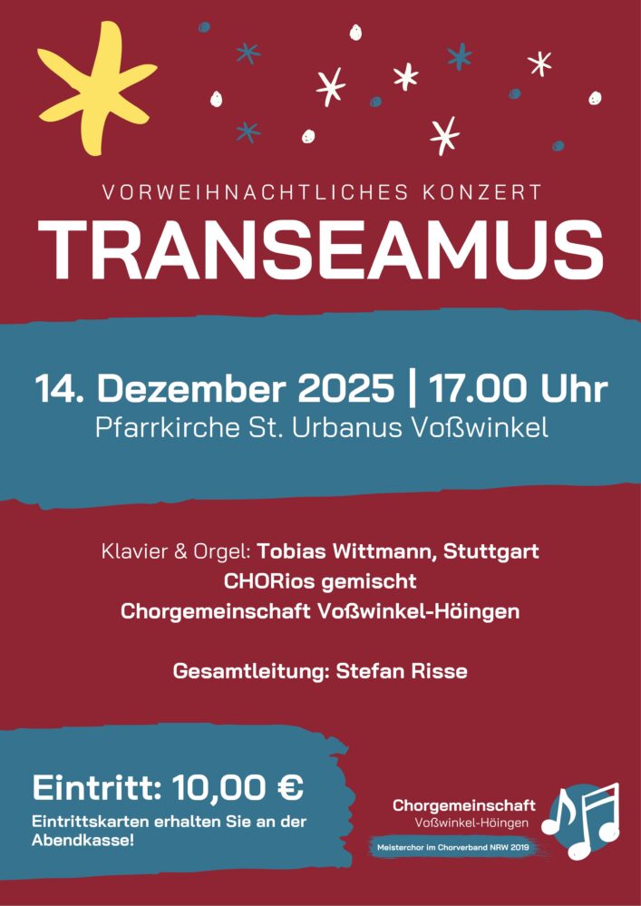 Transeamus Transeamus Die Chorgemeinschaft Höingen-Voßwinkel lädt am 14. Dezember um 17 Uhr zum Konzert in die Kirche nach Voßwinkel ein.